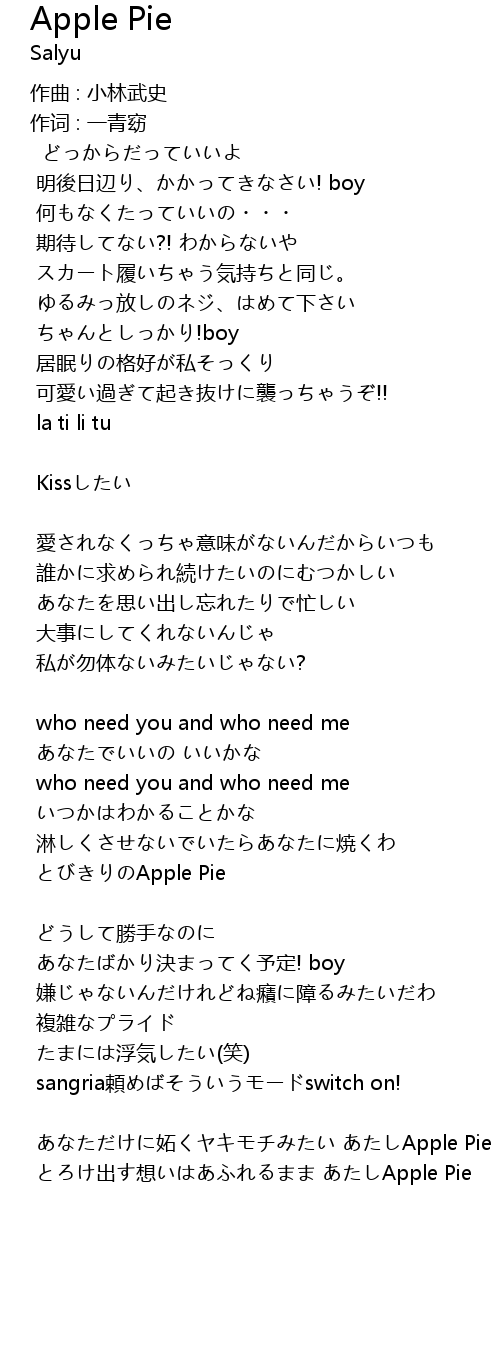 | あなただけに妬くヤキモチみたい あたしApple Pie | |