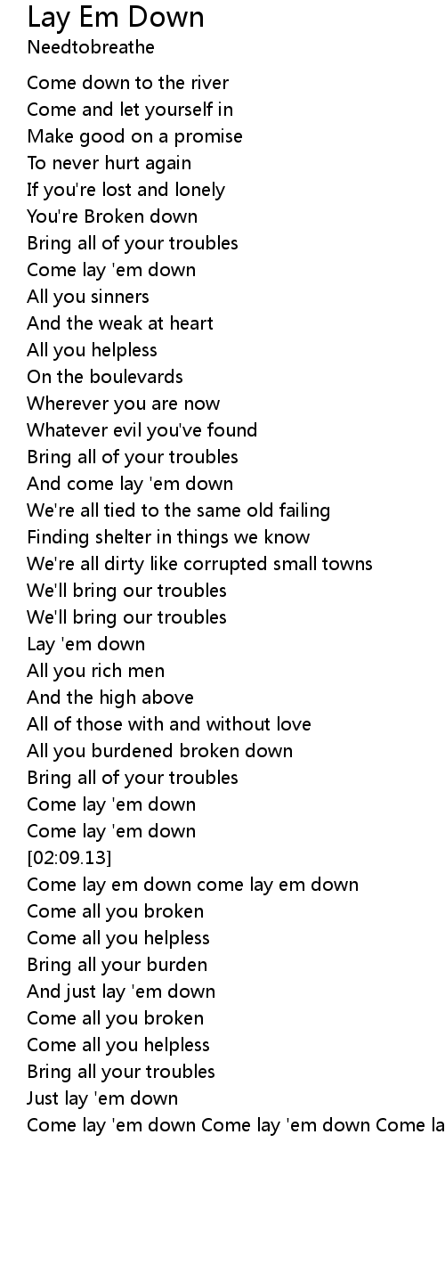 Come lay 'em down Come lay 'em down Come lay 'em down |