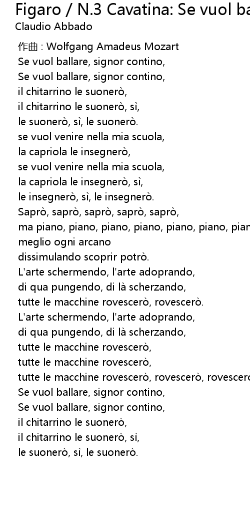| Song | Figaro / N.3 Cavatina: Se vuol ballare, signor Contino |