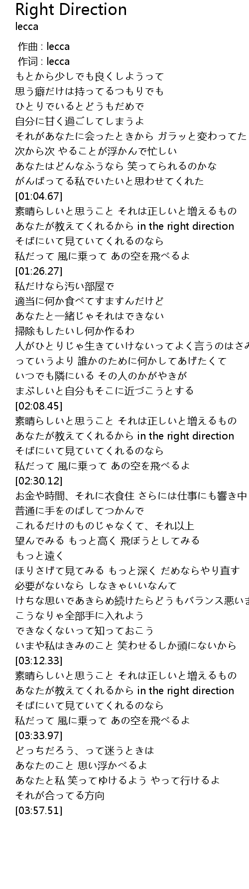 | [03:17.74] | あなたが教えてくれるから in the right direction |