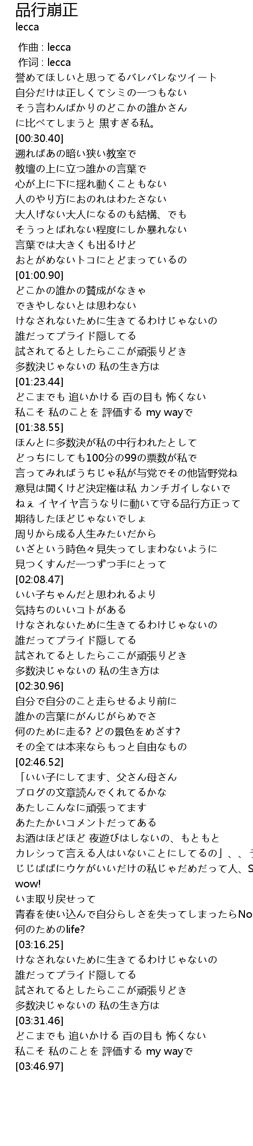 | [01:53.28] | ねぇ イヤイヤ言うなりに動いて守る品行方正って |