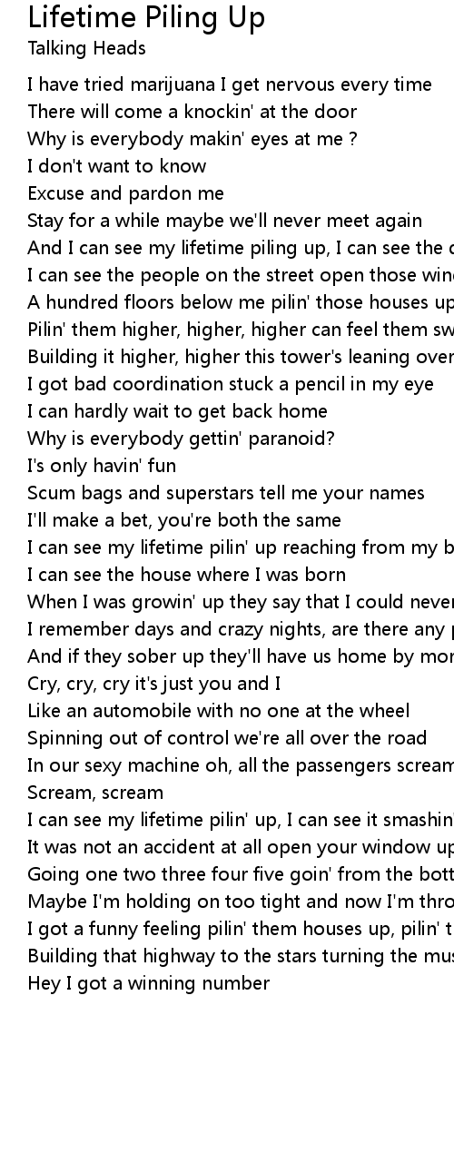I can see my lifetime pilin' up, I can see it smashin' into yours