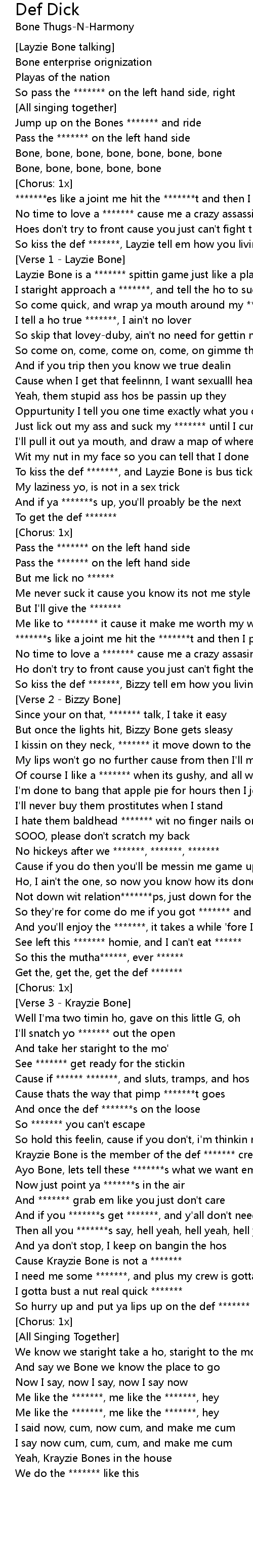 To kiss the def *******, and Layzie Bone is bus tickets |