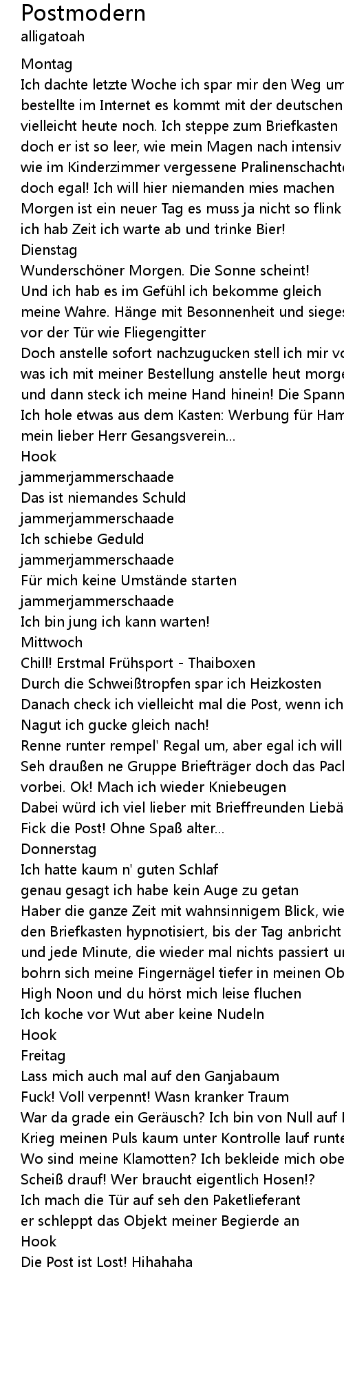 | Seh draußen ne Gruppe Briefträger doch das Pack geht | |