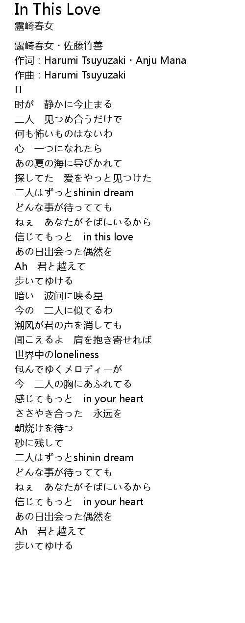 | 作词:Harumi Tsuyuzaki・Anju Mana | |