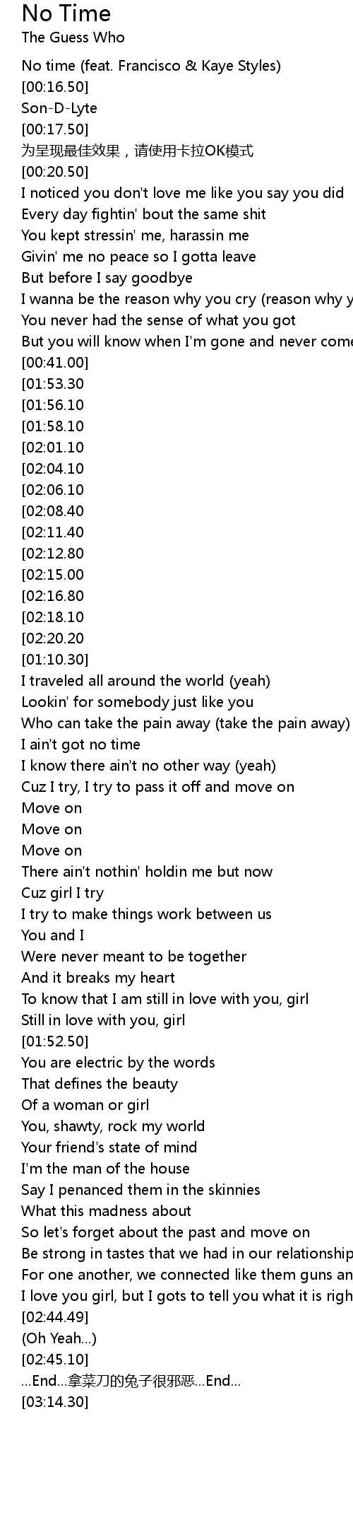 | [00:16.00] | No time (feat. Francisco & Kaye Styles) |