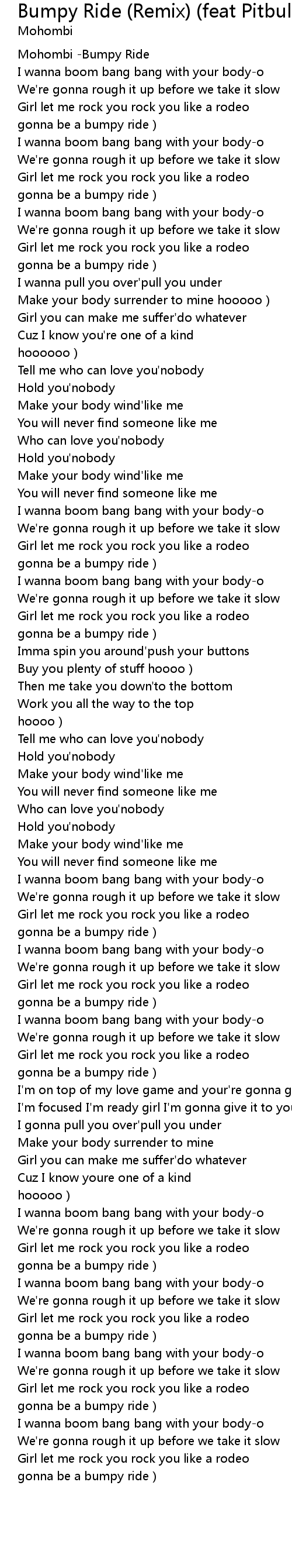 | [00:00.487] | Mohombi -Bumpy Ride |
