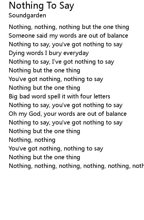 Nothing to say, I've got nothing to say |