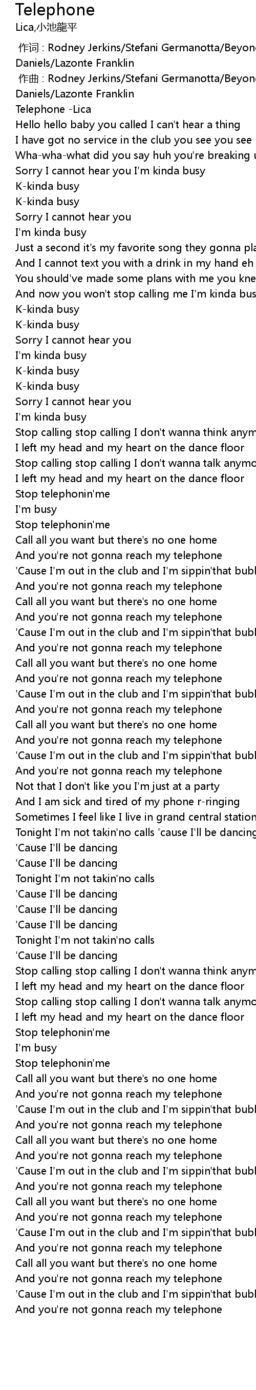 | [00:00.971] | Telephone -Lica |