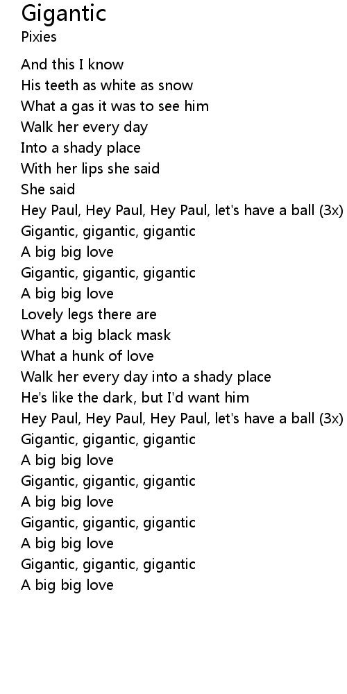 | [01:33.55] | Gigantic, gigantic, gigantic |