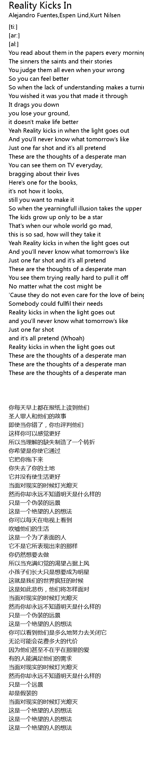 Reality Kicks In Lyrics