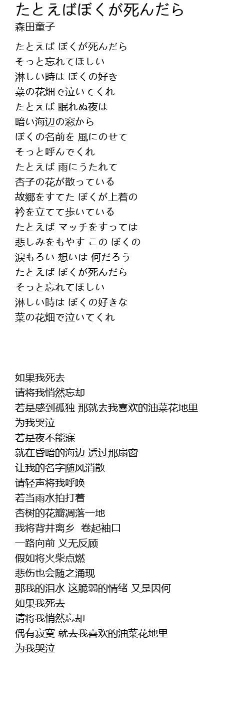 | Song | たとえばぼくが死んだら |