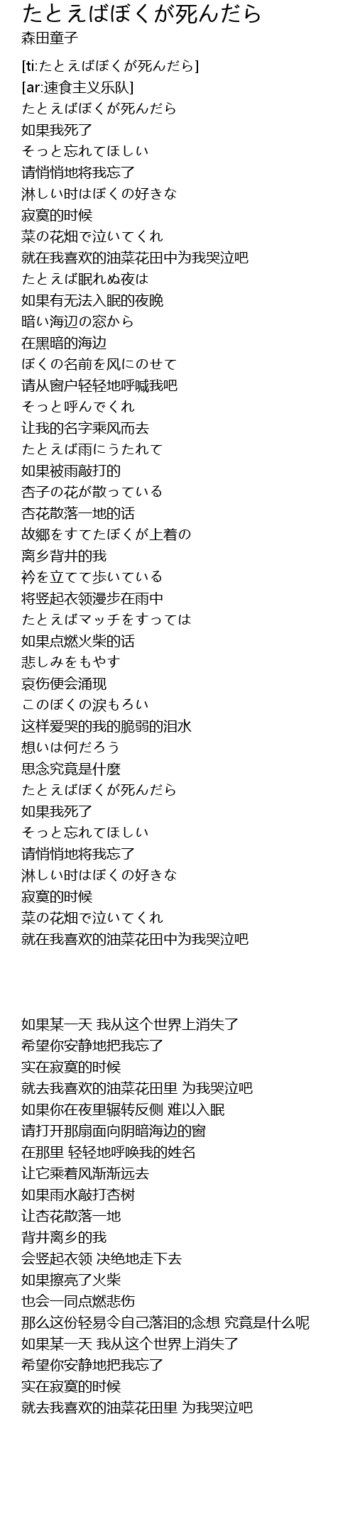 | [00:12.417] | rú guǒ wǒ sǐ le |