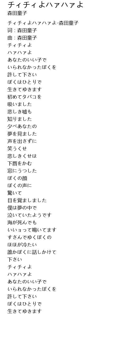 | [00:00.692] | チィチィよハァハァよ-森田童子 |