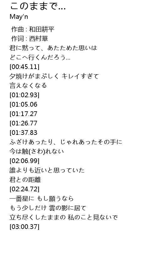 | [03:36.23][01:17.27] | あの子のように 近づいてもいい? |