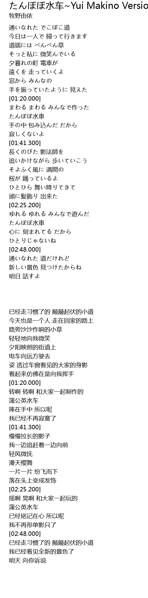 | Song | たんぽぽ水车~Yui Makino Version~ |