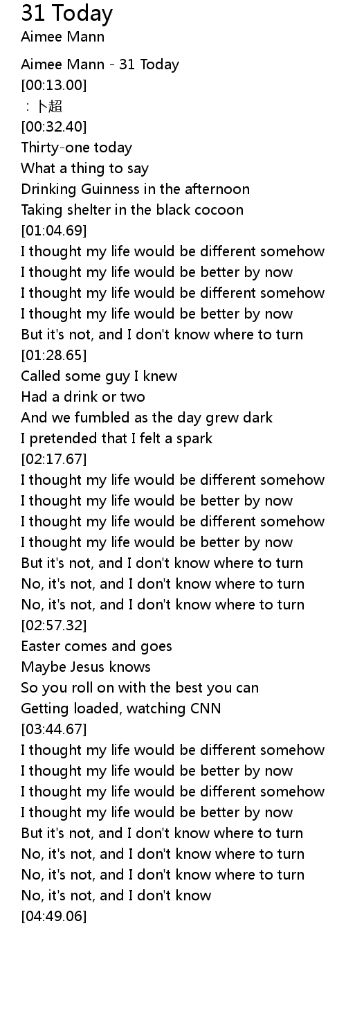 | [04:17.56] | No, it's not, and I don't know where to turn |