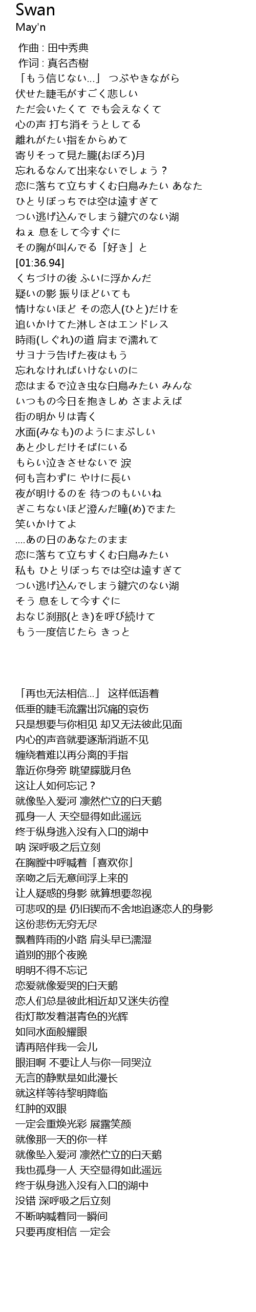 | [01:02.79] | 恋に落ちて立ちすくむ白鳥みたい あなた |