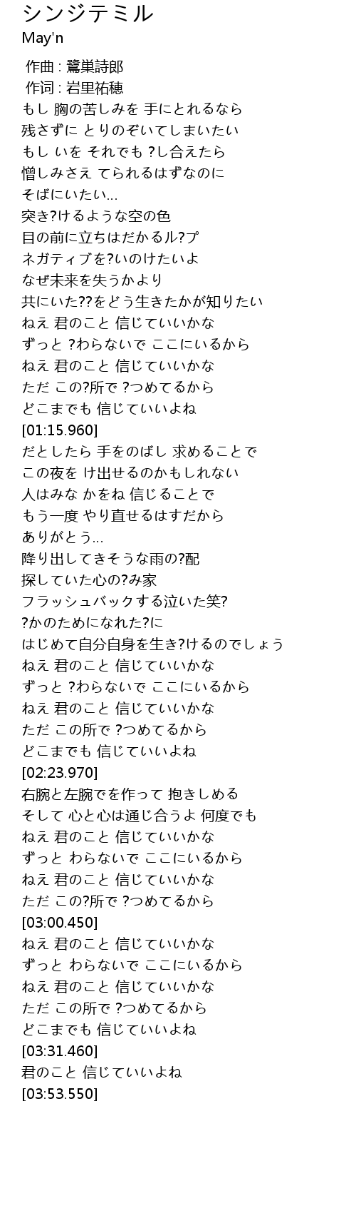 | [02:52.340] | ねえ 君のこと 信じていいかな |