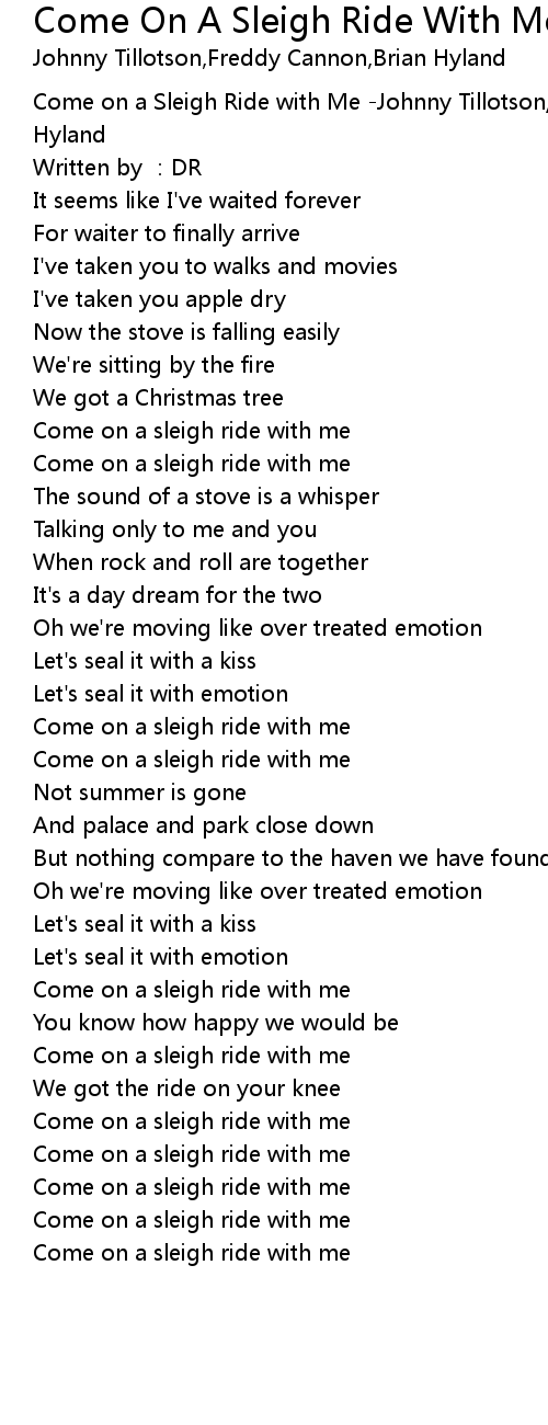 | [00:00.269] | Come on a Sleigh Ride with Me Johnny Tillotson Freddy Cannon Brian Hyland |