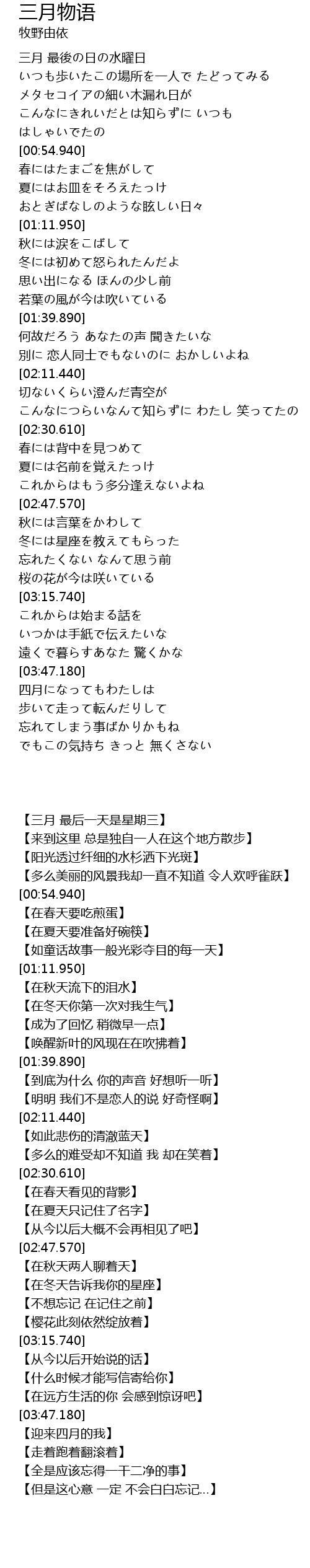 | [00:19.560] | sān yuè zuì hòu rì shuǐ yào rì |