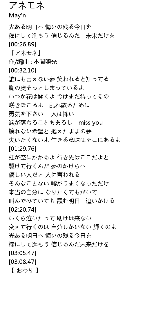 | [00:28.10] | 「アネモネ」 |