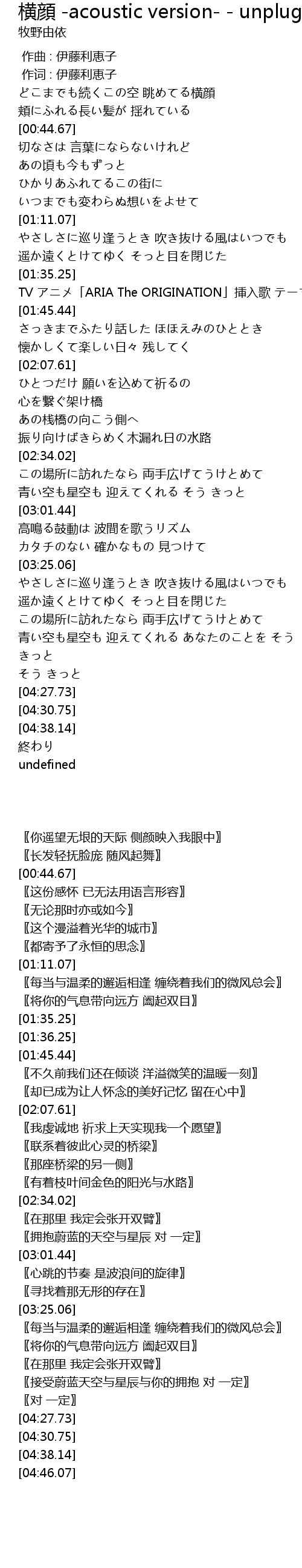 | [01:36.25] | TV アニメ「ARIA The ORIGINATION」挿入歌 テーマ |