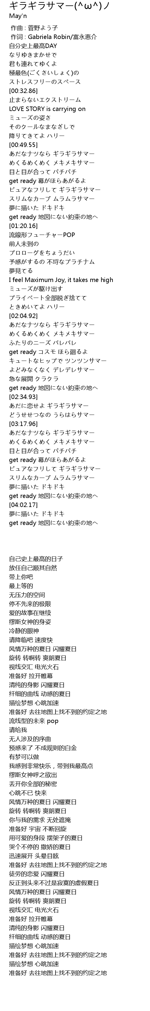 | [01:04.59] | ピュアなフリして ギラギラサマー |