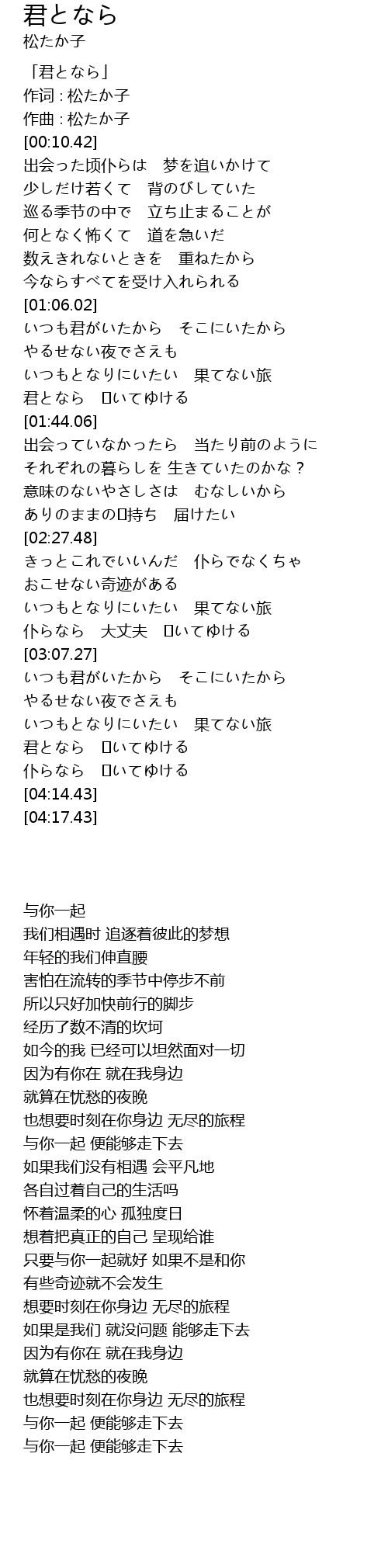 | [03:45.65] | いつもとなりにいたい 果てない旅 |