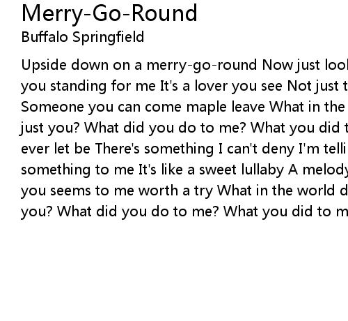 Upside down on a merry-go-round Now just look at me Spreading your eyes to see you standing for me It's a lover you see Not just to anyone Not just to fee Someone you can come maple leave What in the world did you do To make me love just you? What did you do to me? What you did to me This time next time Which ever let be There's something I can't deny I'm telling you now Your love is something to me It's like a sweet lullaby A melody that could only imply Loving you seems to me worth a try What in the world did you do To make me love just you? What did you do to me? What you did to me What did you do to me? |