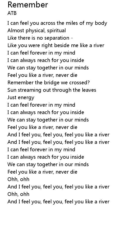 And I feel you, feel you, feel you like a river |
