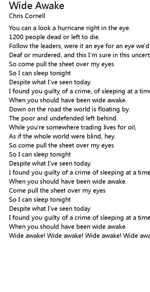 Wide awake! Wide awake! Wide awake! Wide awake! |
