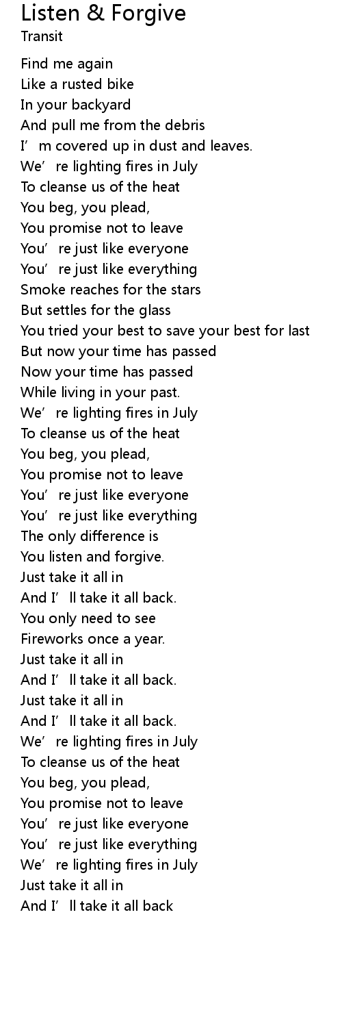 | Song | Listen & Forgive |
