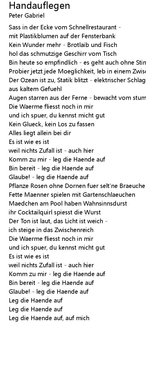 Leg die Haende auf |