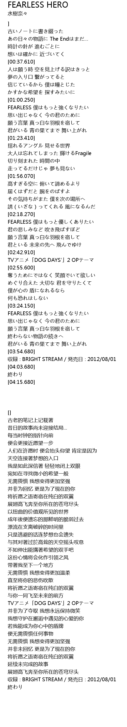 | [03:24.760] | FEARLESS 僕はもっと強くなりたい |