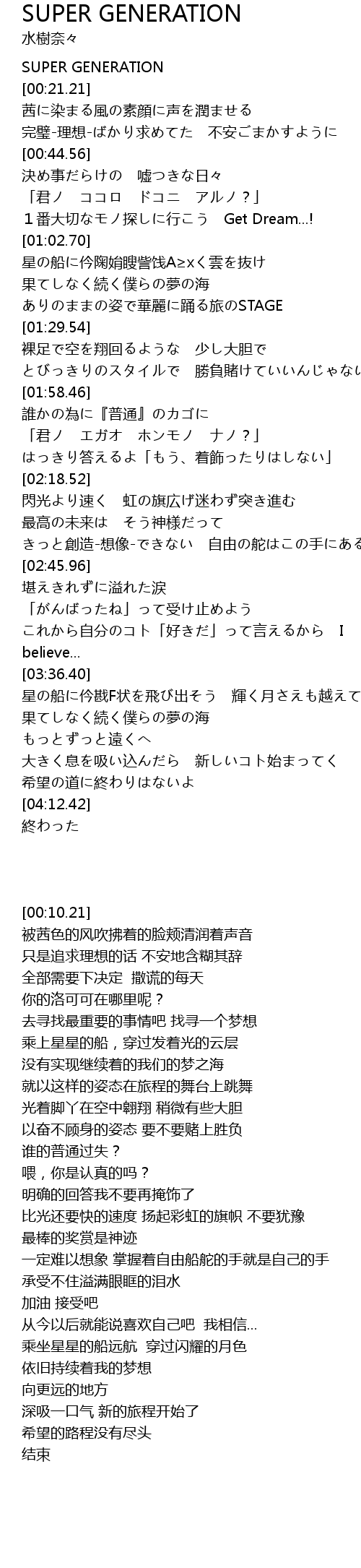 | [00:53.34] | fān dà qiè tàn xíng Get Dream...! |