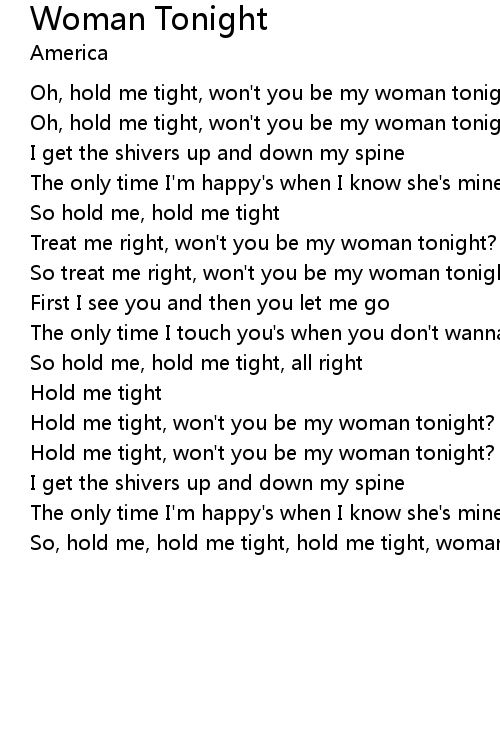 So, hold me, hold me tight, hold me tight, woman tonight |