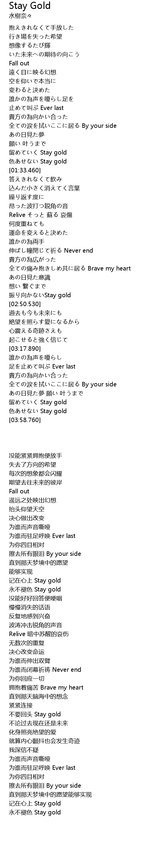 | [03:50.500] | 色あせない Stay gold |