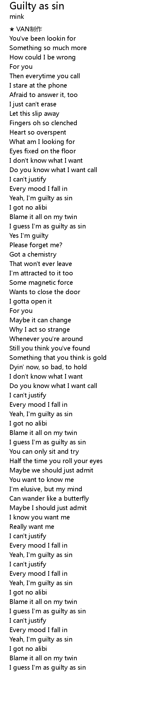| I guess I' m as guilty as sin |