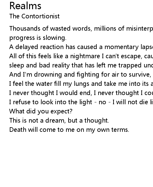 And I'm drowning and fighting for air to survive, with nowhere to go. |