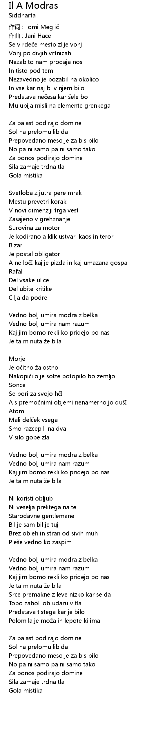 | 作词 : Tomi Meglič | |