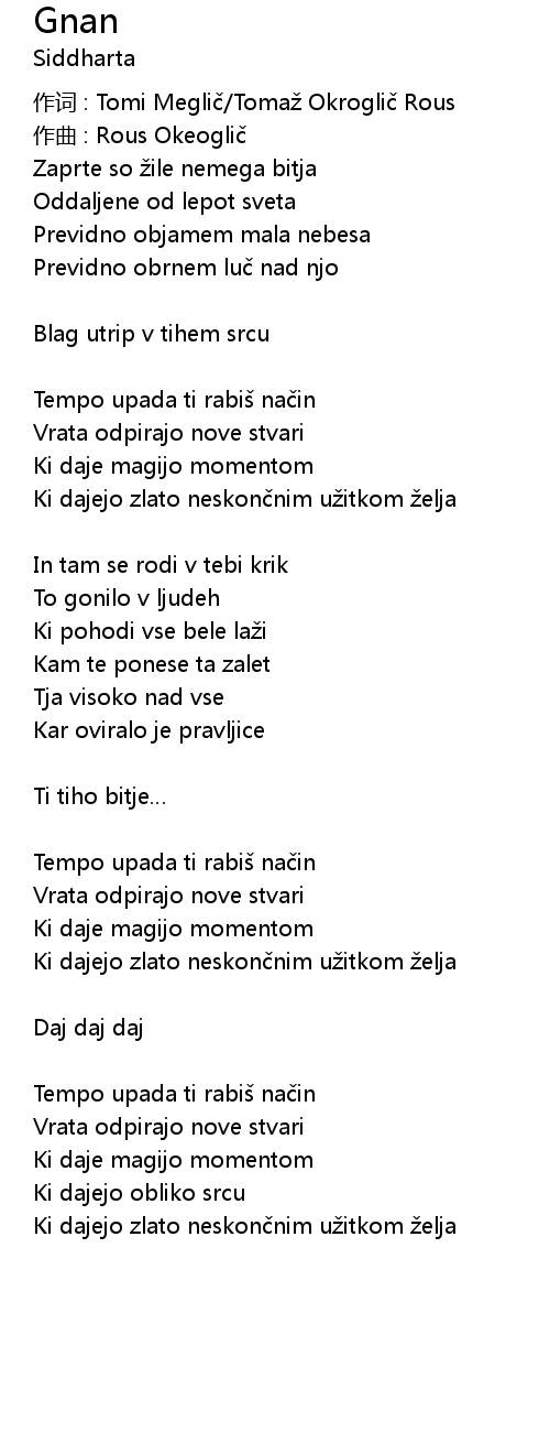 | 作词 : Tomi Meglič/Tomaž Okroglič Rous | |
