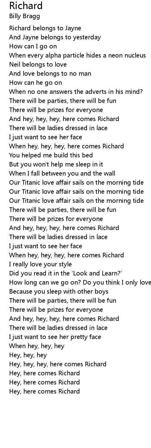 When hey, hey, hey, here comes Richard |