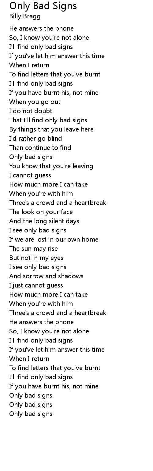 Only Bad Signs Lyrics