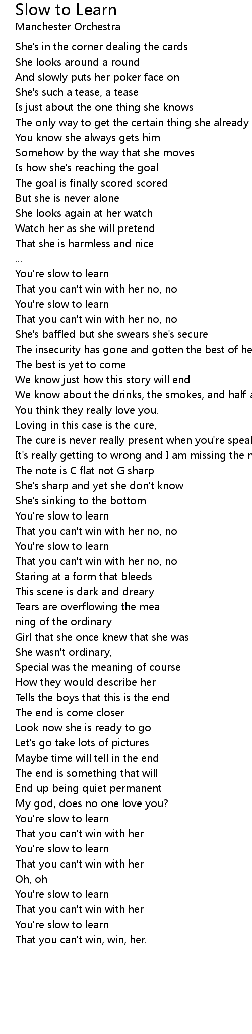 And slowly puts her poker face on |