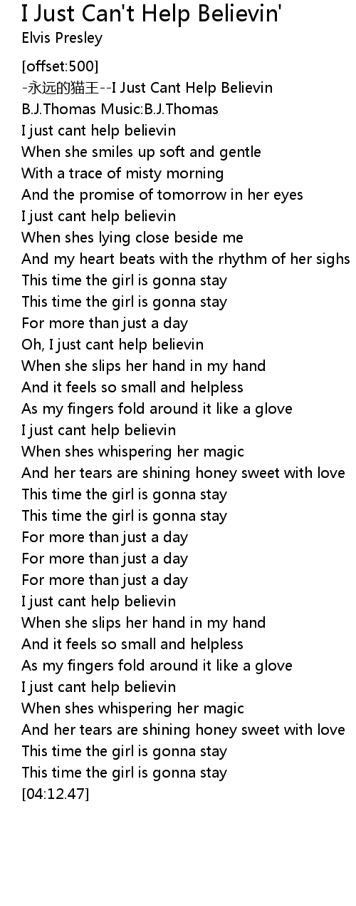 | [00:20.73] | I just cant help believin |