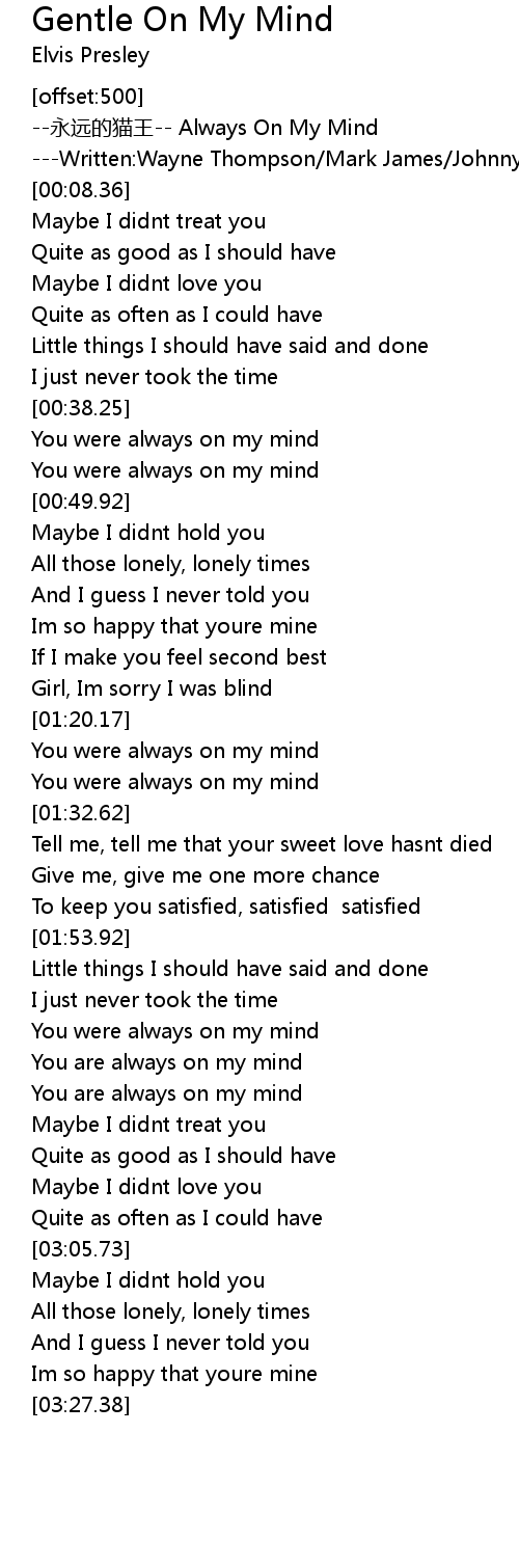 | [00:05.49] | --永远的猫王-- Always On My Mind |