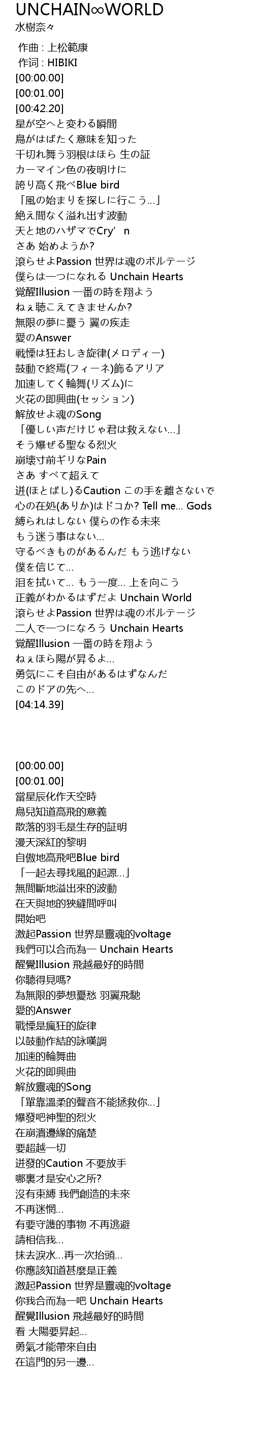 | [03:36.29] | 正義がわかるはずだよ Unchain World |