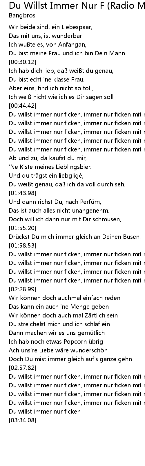 | [02:59.95] | Du willst immer nur ficken, immer nur ficken mit mir. |