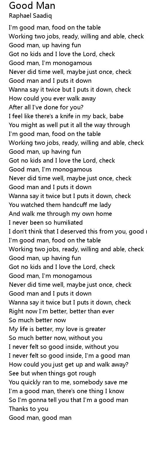 So I'm gonna tell you that I'm a good man |